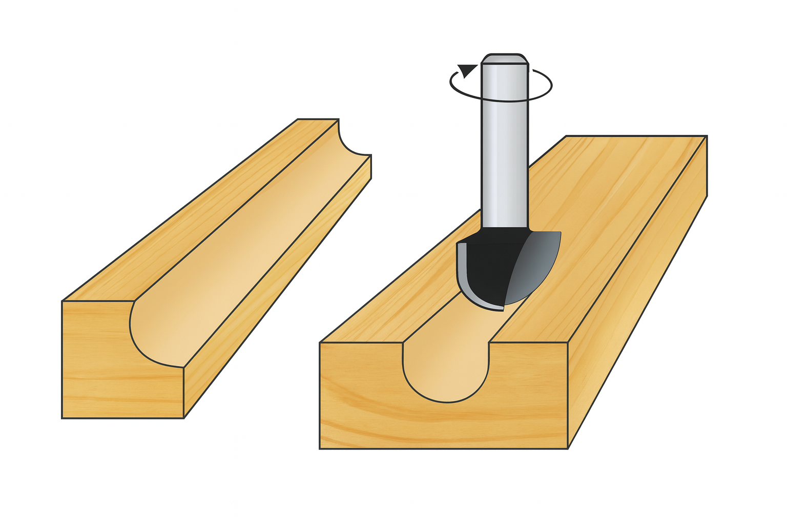 - Fresa de radio convexo para madera, perfecta para cantos y ranurado