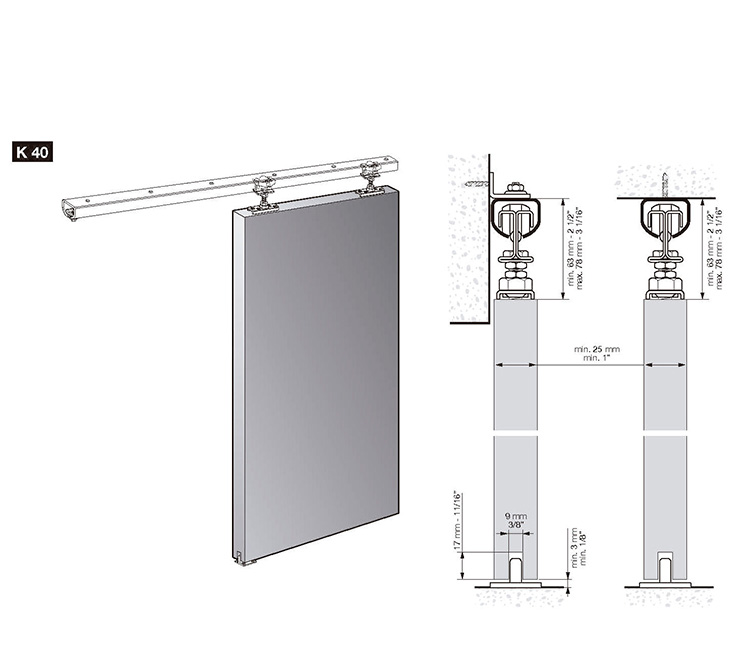 - Sistema para puertas correderas de madera o metal de hasta 40 kg