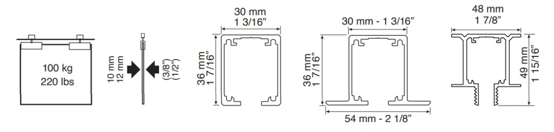 Guías disponible en aluminio anodizado en dos acabados: Plata y Negro, para integrarse perfectamente en cualquier entorno.