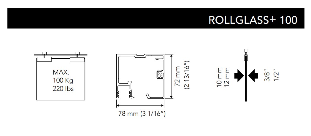 - 100 kg de peso máximo por hoja corredera, fijo sin limite de peso (para hojas de + de 100 kg sobre pedido)