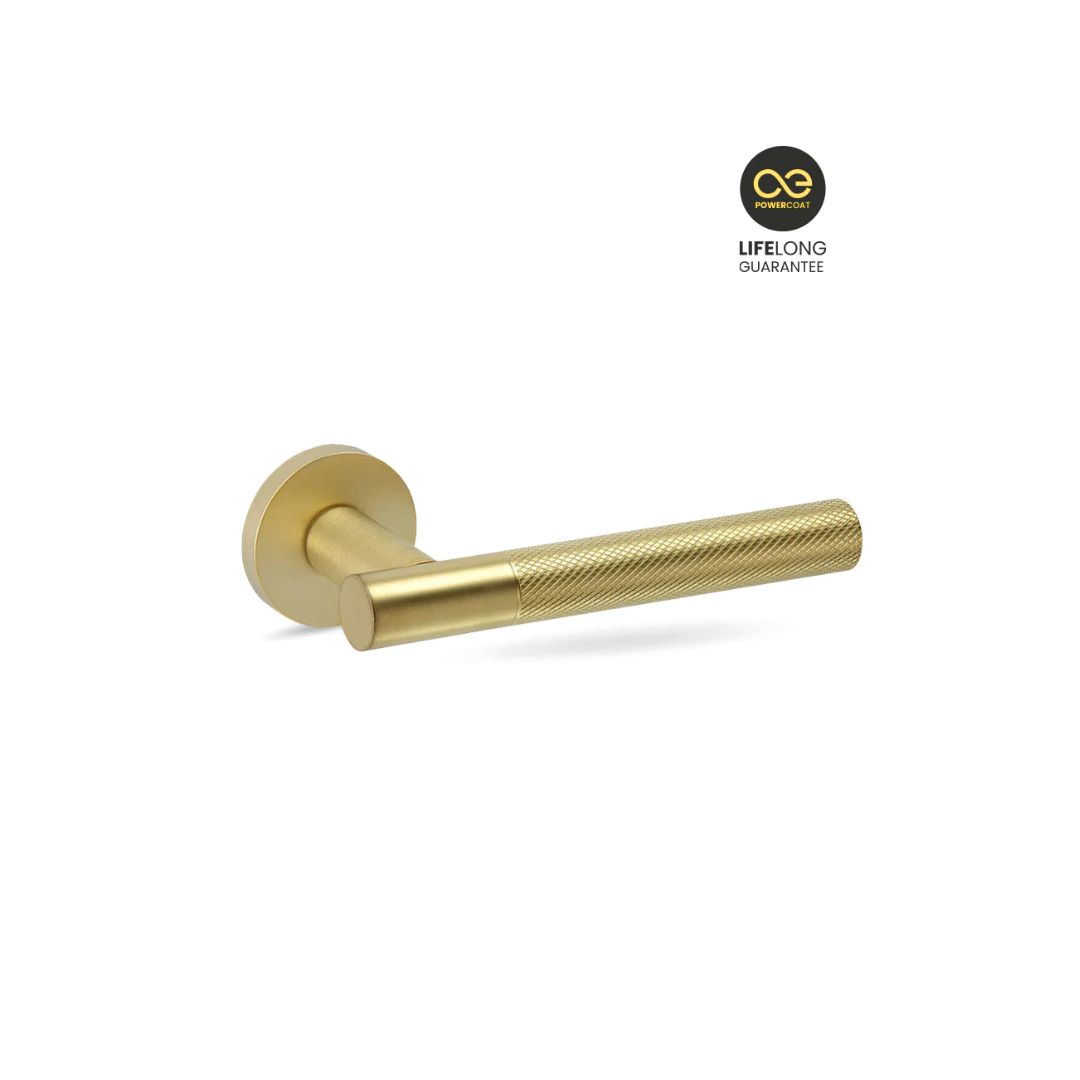 El acabdo Power Coat grafito y latón satinado está fabricada con tecnología PowerCoat®, garantiza una resistencia excepcional al desgaste, asegurando un acabado impecable durante toda su vida útil. Su instalación es sencilla y es compatible con puertas estándar, lo que la convierte en una opción versátil tanto para viviendas como para espacios comerciales.
