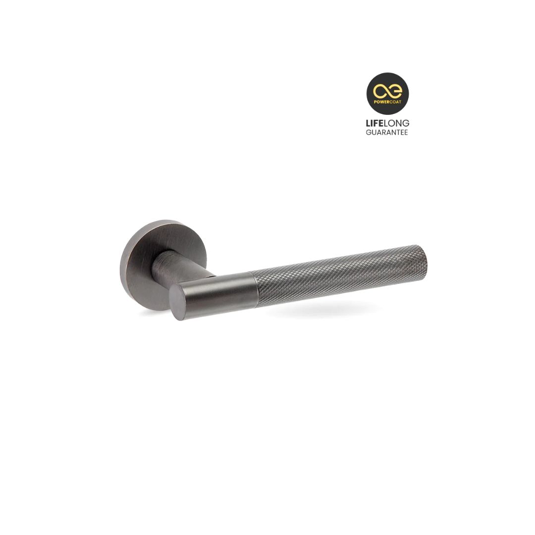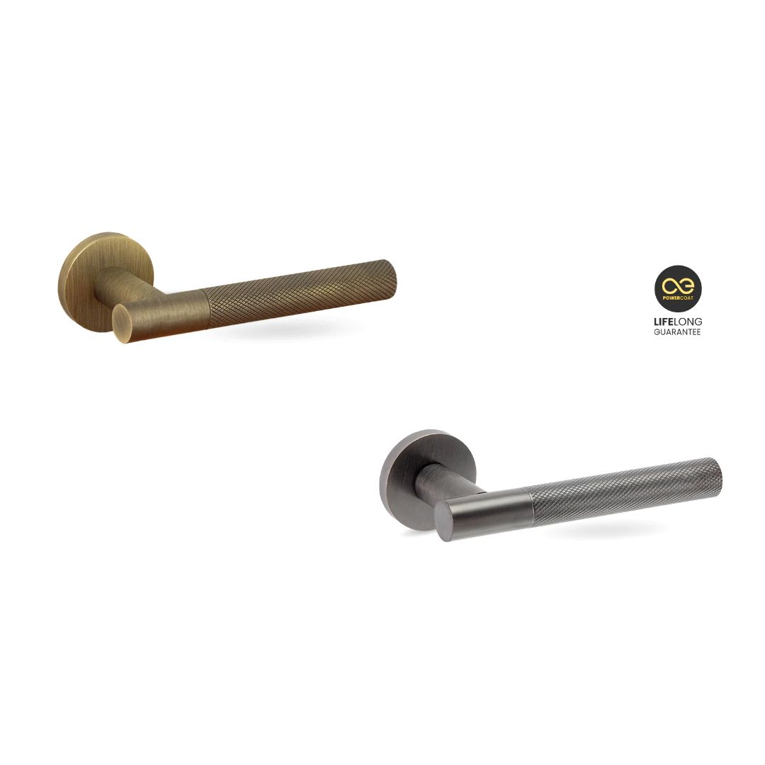 La Maneta Roseta Redonda Groël Ibiza 256 es una solución elegante y duradera para puertas interiores. Con acabados de alta gama como bronce mate y power coat grafito, esta maneta destaca por su diseño industrial contemporáneo y su textura estriada tipo “knurled” que ofrece un agarre firme y sofisticado. Ideal para proyectos de arquitectura moderna, reformas de interiores y espacios de estilo minimalista o vintage.