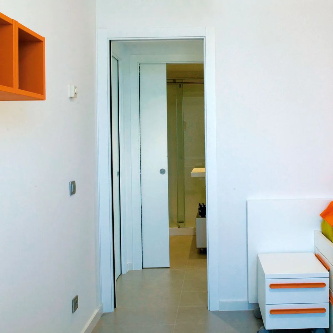 - Instalación con puerta sin jambas, tipo rasomuro.