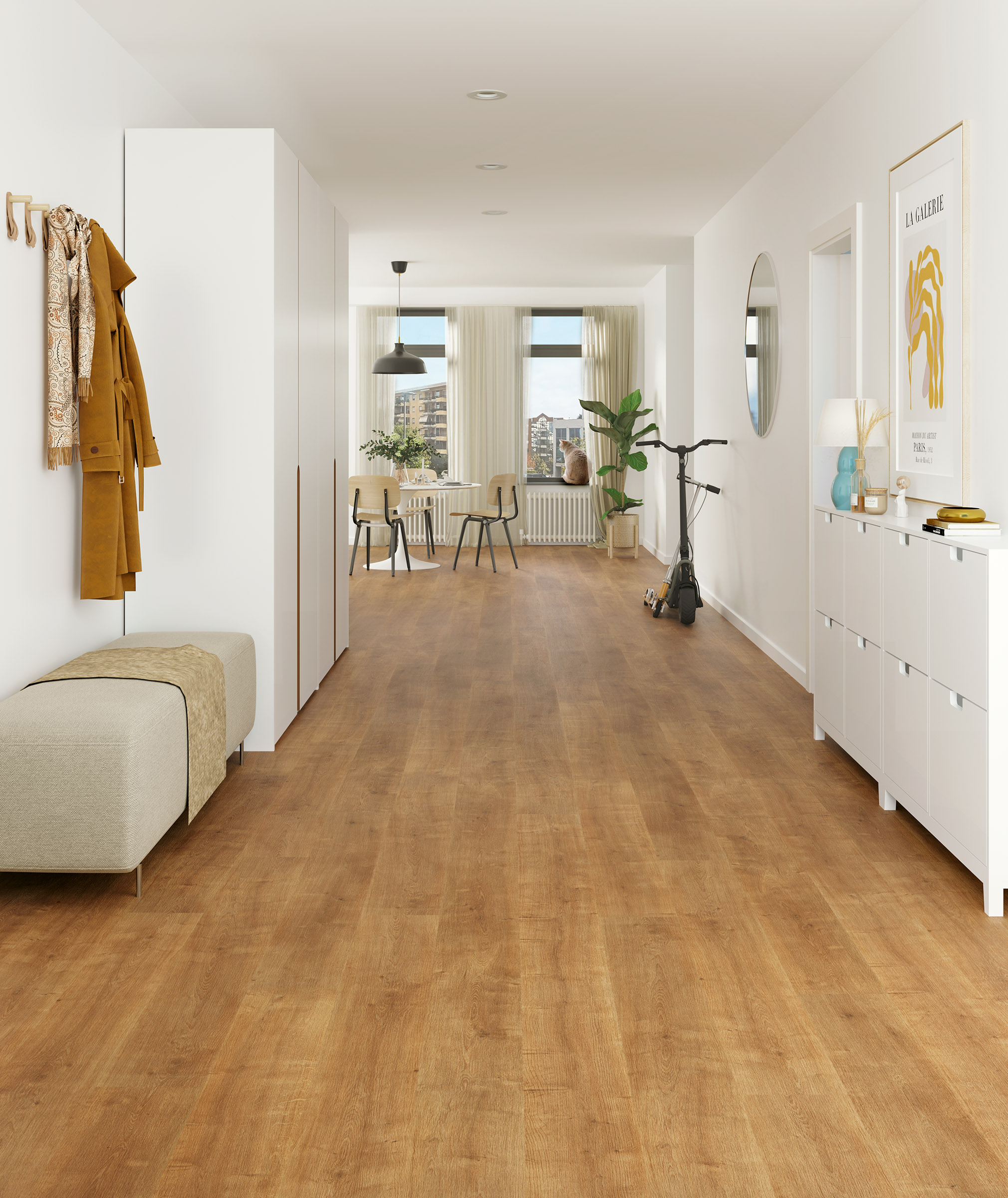 El Parquet Finfloor Purefloor 7 mm es un suelo laminado elegante, resistente y funcional, perfecto para quienes buscan un diseño natural con un mantenimiento sencillo. Sus diferentes tonos cálidos aportan luminosidad y sensación de amplitud a cualquier estancia, creando un ambiente relajado y confortable.