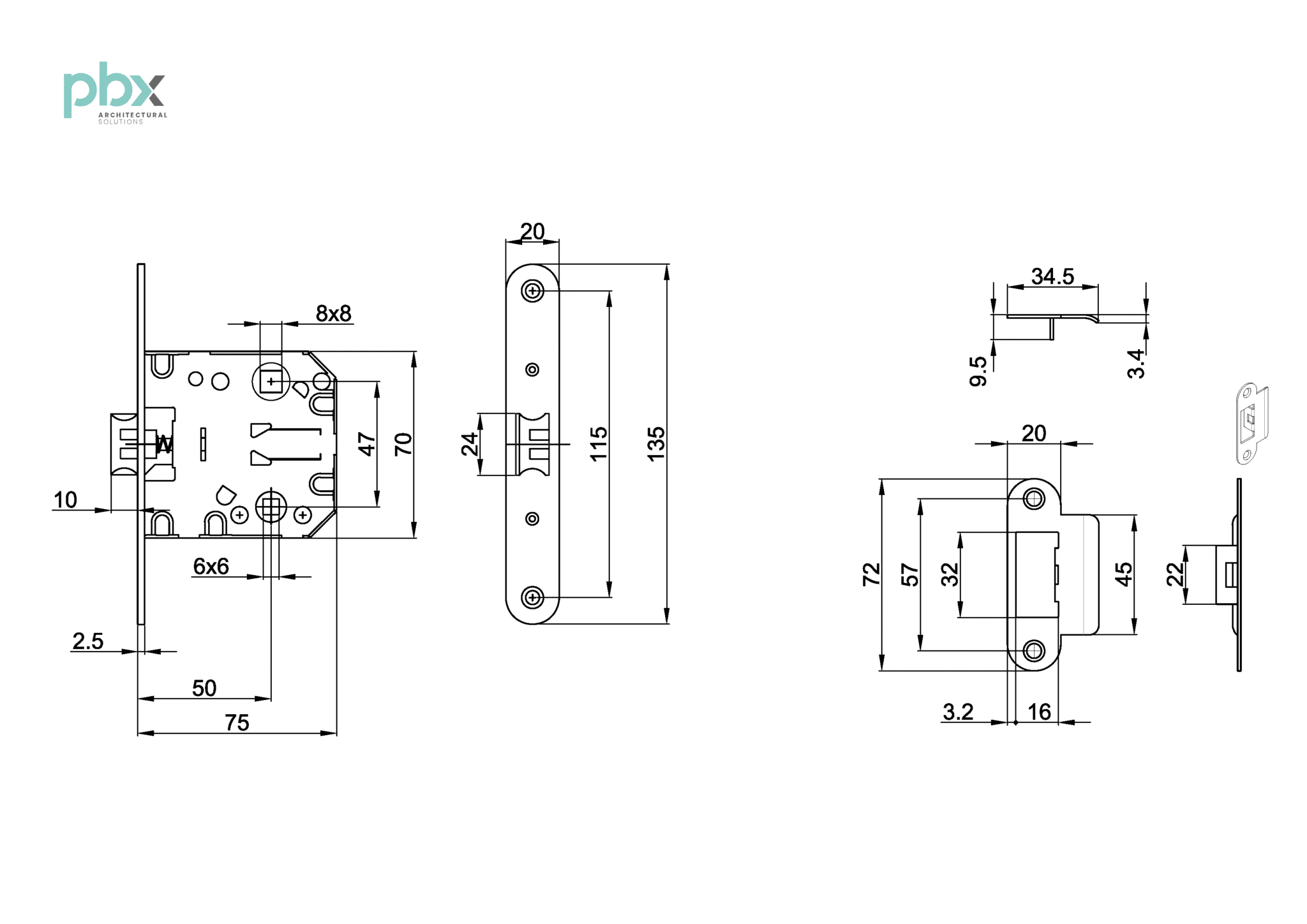 Este modelo cuenta con una distancia entre ejes de 47 mm, entrada de 50 mm y es reversible, lo que permite su instalación en puertas con apertura hacia ambos lados. Además, incluye cuadradillo de 8 mm en acero para la manilla y cuadradillo de 6 mm en zamak para la condena.
