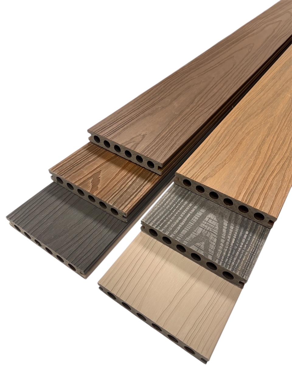 La Tarima Exterior sintética tiene unos diseños con veta texturizada que le dan una apariencia muy real, es resistente a manchas e insectos, no se astilla ni pudre, y mantiene su color con poco mantenimiento.