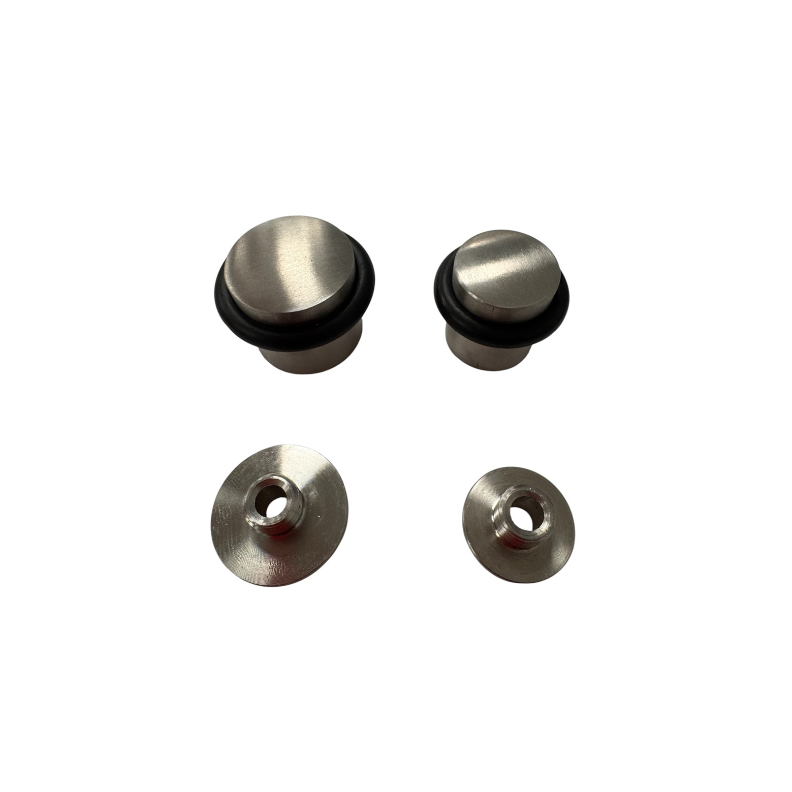 El Tope de puerta Acero Inox con base es ideal para zonas de alto tránsito donde se requiere máxima resistencia está fabricado en Acero Inoxidable con una base roscada para instalar el tornillo para posteriormente roscar el tope encima.